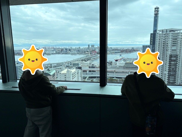 神戸市役所24階の展望台に上がり、神戸の街並みを見下ろしました。